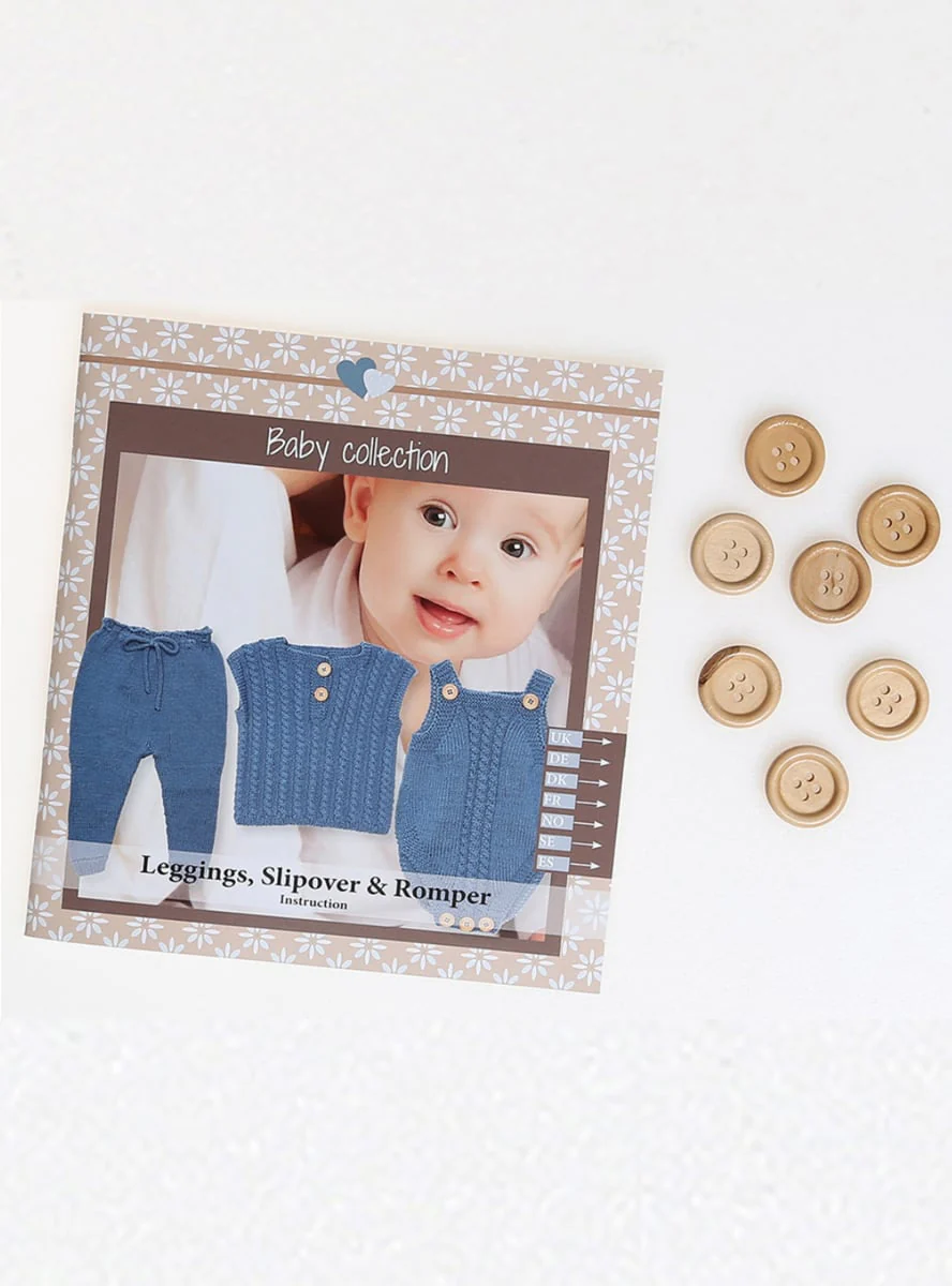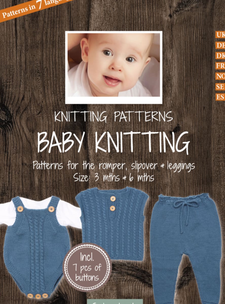 3 patrones en uno para tejer unos precios short, un pantalón, un sweater sin mangas y un bombacho. Las instrucciones vienen en 7 idiomas e incluyen los botones y accesorios pequeños.