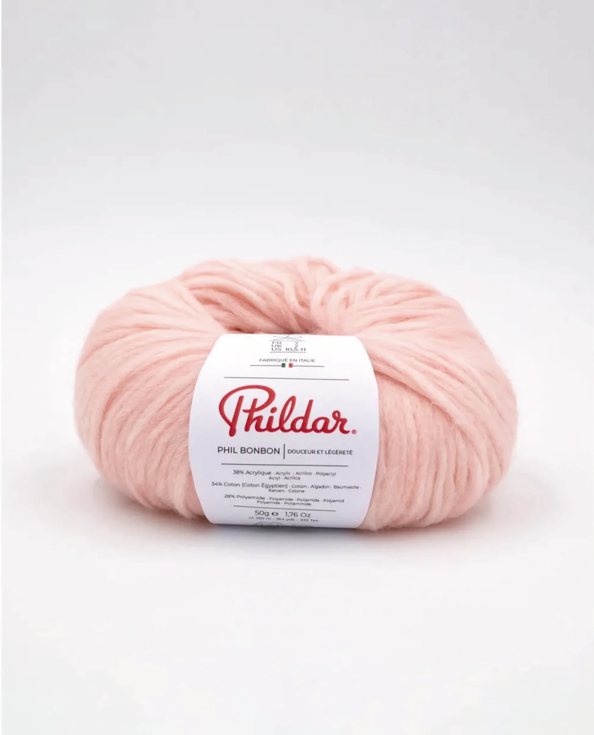 PHIL BONBON es una lana soplada, lo que le confiere una gran ligereza y una auténtica suavidad.