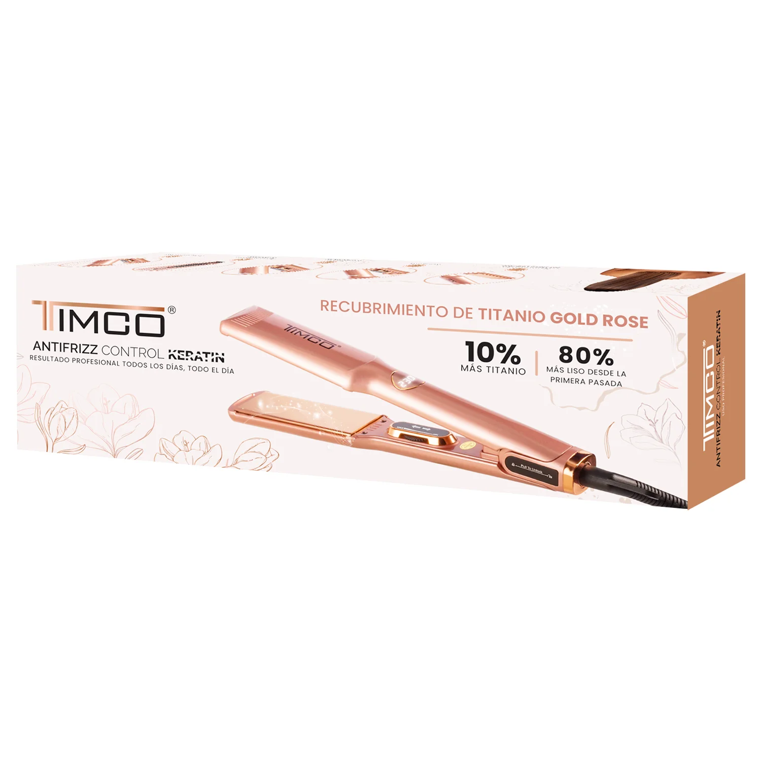 Plancha Alaciadora de Cabello Uso Profesional Titanio Gold Rose 4 cm Antifrizz Control Keratin Timco P1100
