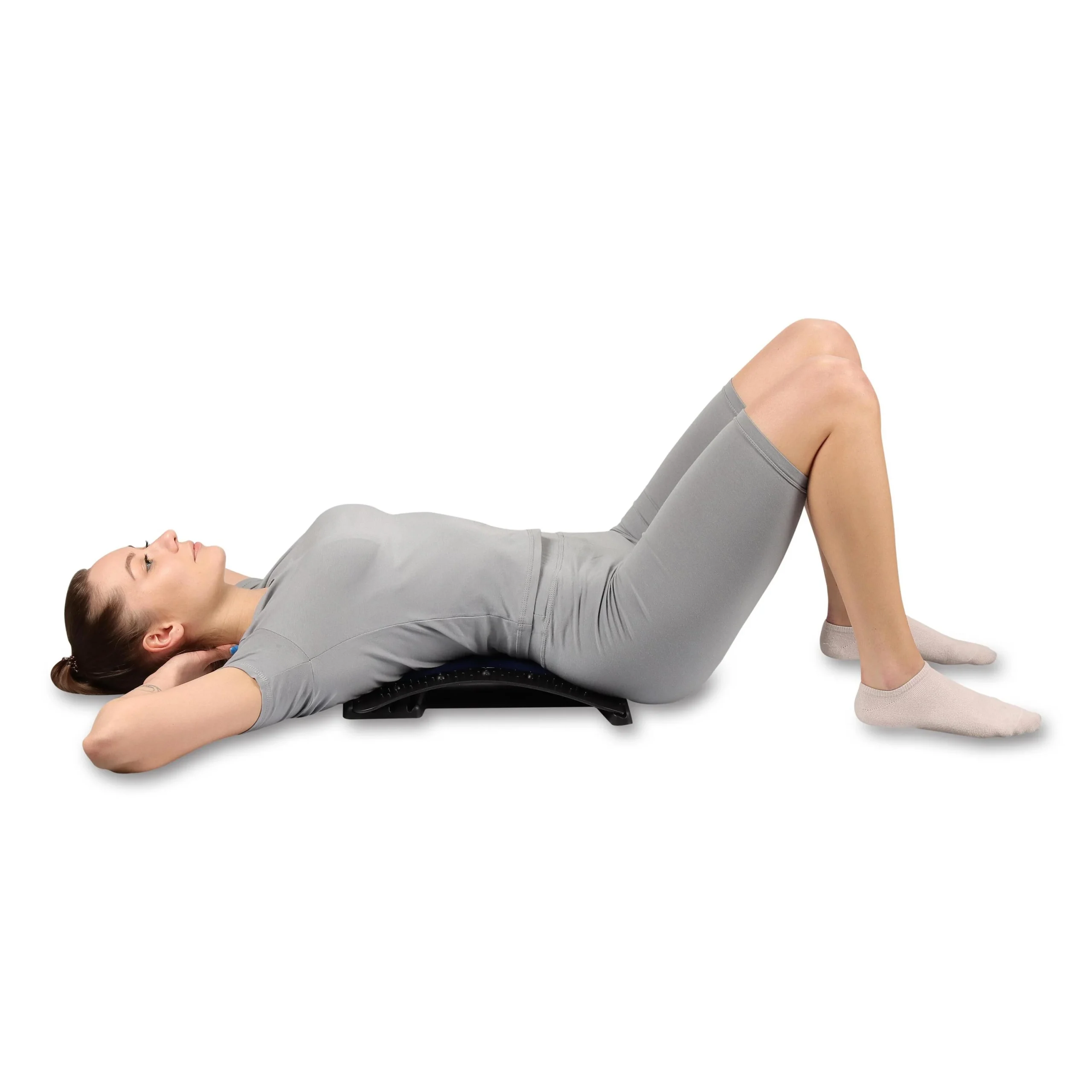 Plataforma masajeadora INDIGO para estirar la espalda. Tiene tres niveles de curvatura. La plataforma está diseñada para un estiramiento suave y natural de la columna bajo el peso de su propio cuerpo.