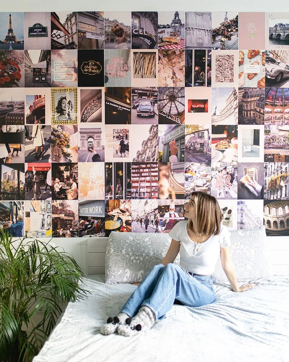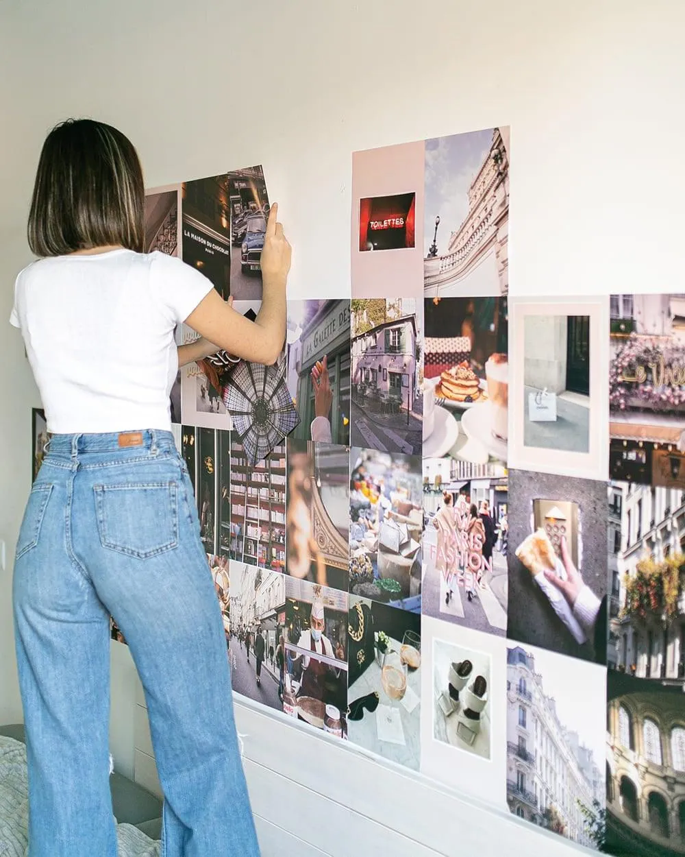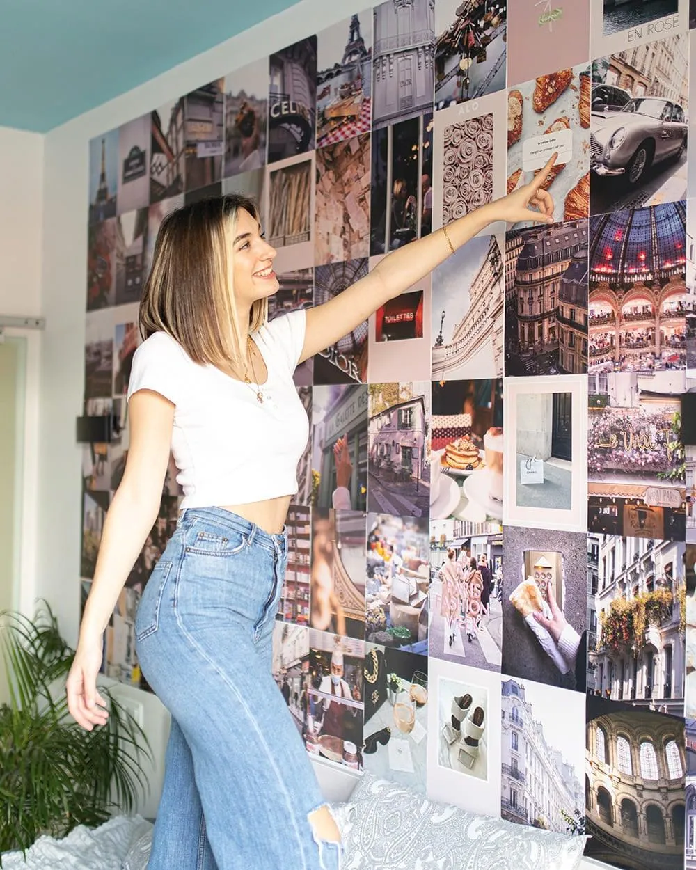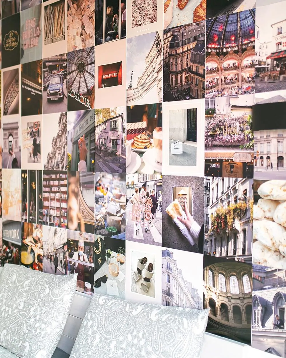 Set de 100 fotos de los rincones más románticos de París. Combina las fotos como prefieras y decora la pared de tu habitación con un estilo diferente. Incluyen masilla adhesiva perfecta para montar tu set sin dañar la pared.
