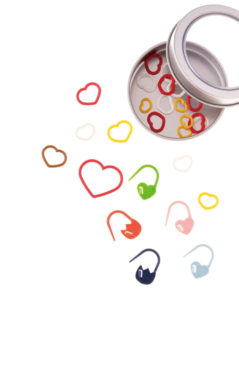 Estos marcadores de puntos son un accesorio de tejido fácil de usar que viene en variados colores según el tamaño. No tiene apertura, se introduce en el palillo como un anillo. Se usan como guías para disminuir o aumentar puntos.