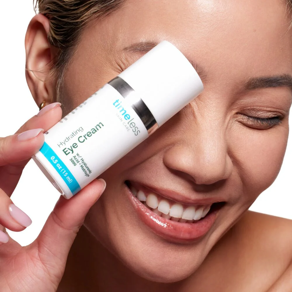 La Hydrating Hyaluronic Acid Eye Cream de Timeless es una crema ultra hidratante y refrescante que trabaja para reparar, rellenar y suavizar las líneas finas alrededor de los ojos. El extracto de algas combinado con péptidos de arroz de soja y extracto de sandía ayuda a reducir la hinchazón mientras aumenta la elasticidad para dejar el área de los ojos levantada y fresca. Es recomendada para todo tipo de piel, incluyendo la piel sensible, y apunta a la piel deshidratada, signos visibles de envejecimiento y arrugas.
