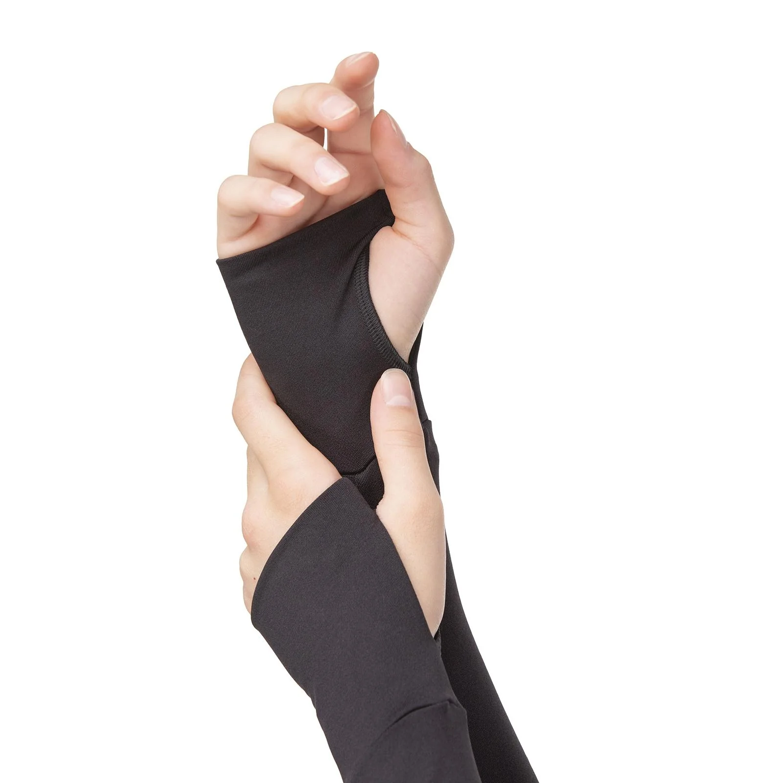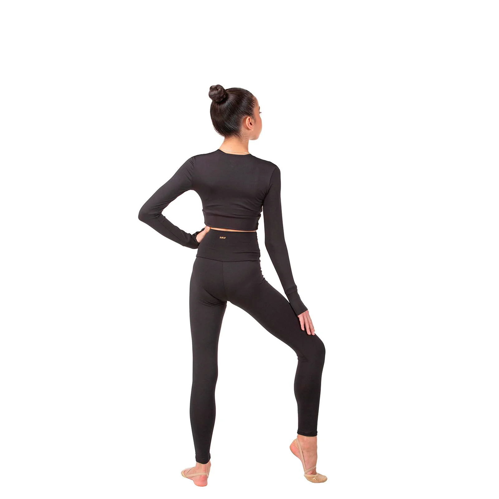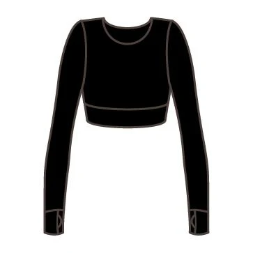 Top elástico de manga larga con cinturilla elástica suave debajo de la línea del pecho. Puño de manga con orificio para el pulgar. El tejido es muy elástico, ligero, transpirable y agradable al cuerpo, absorbe la humedad. La superficie lisa y mate del tejido capta la luz y adelgaza.