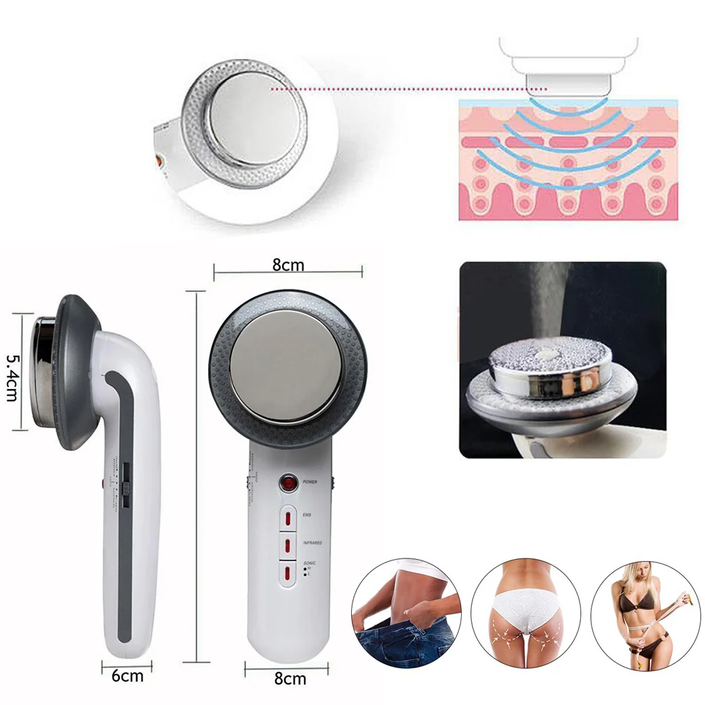 Este dispositivo adopta ultrasonido de 1 Mhz y energía infrarroja para masajear y tratar la piel de forma efectiva, así como masaje de adelgazamiento ultrasónico para esculpir el contorno corporal, eliminar el exceso de grasa, tonificar el músculo, estimulan la función corporal saludable a través del rejuvenecimiento celular y la rehabilitación del diafragma corporal.