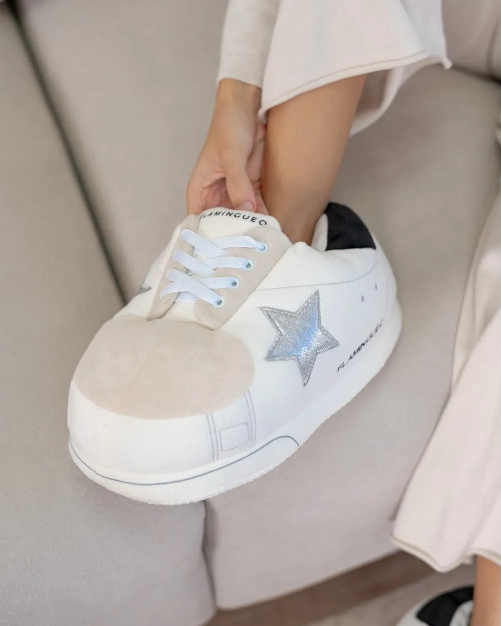 Zapatillas de casa con un diseño original y divertido. Son extra grandes, resistentes y calentitas. ¡Perfectas para los amantes de las sneakers!