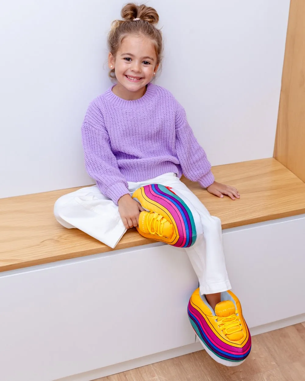Zapatillas de casa con un diseño original y divertido disponibles para los más peques de la casa. Son extra grandes, resistentes, calentitas y súper cómodas. ¡Perfectas para los amantes de las sneakers!