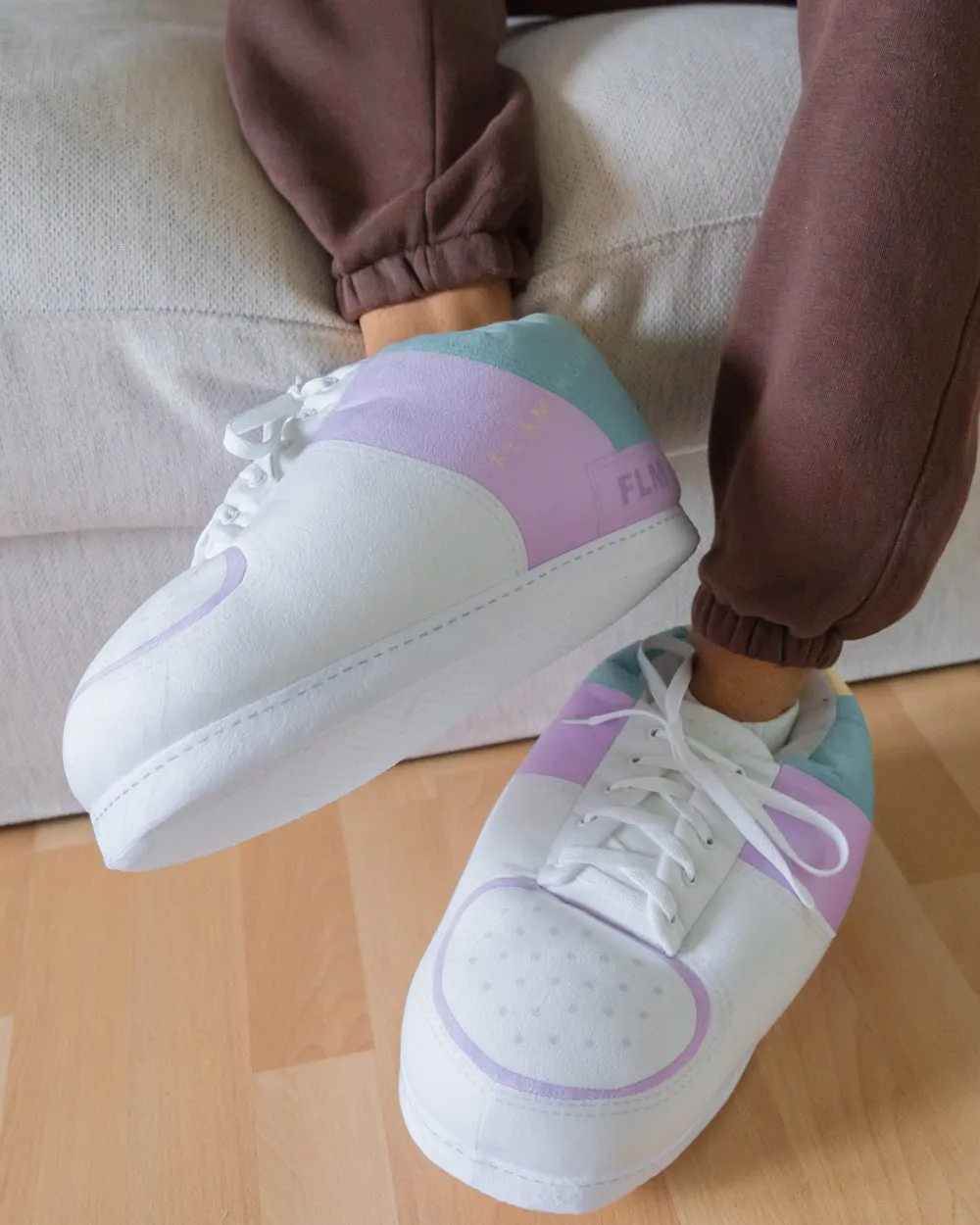 Zapatillas de casa con un diseño original y divertido. Son extra grandes, resistentes y calentitas. ¡Perfectas para los amantes de las sneakers!