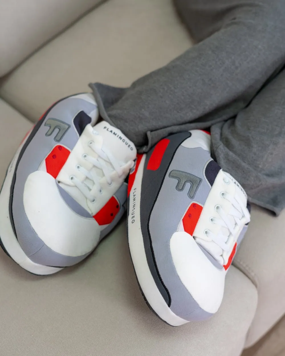 Zapatillas de casa con un diseño original y divertido. Son extra grandes, resistentes y calentitas. ¡Perfectas para los amantes de las sneakers!